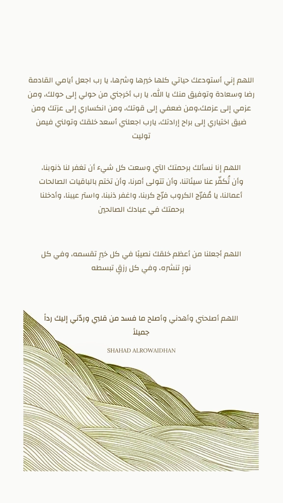 - اللهم لا تحرمنا لذة العبادة والطاعة في العشر الأول من ذي الحجة، ولا تكلنا إلى أنفسنا طرفة عين فنكن من الغافلين.