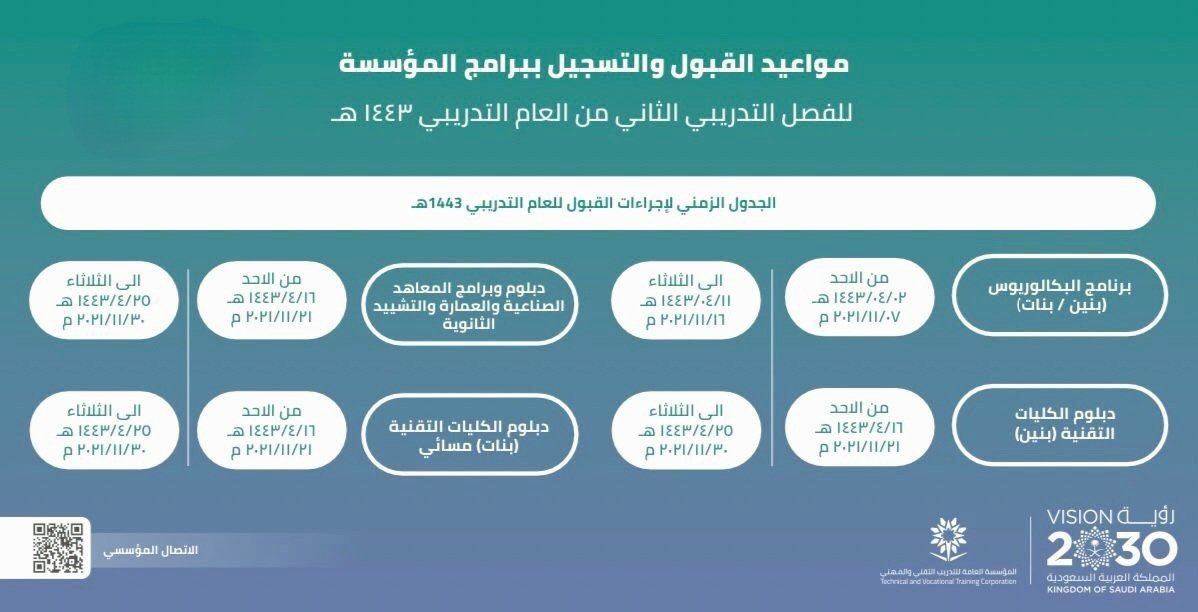 | دبلوم الكليّات التّقنيّة – بنات مسائيّ | الأحد | 25/ذي الحجة/1443هـ | 24/يوليو/2022م |